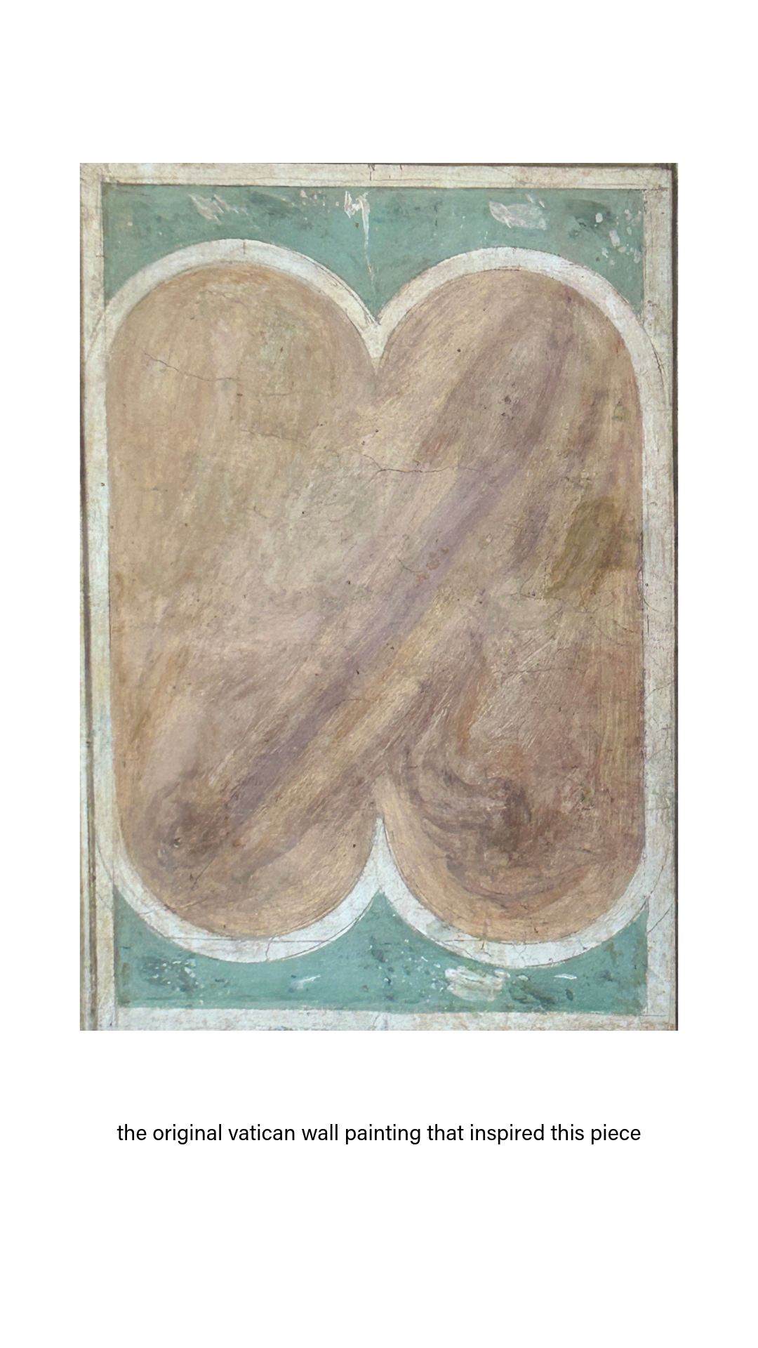 this is one of several paintings that was inspired by the Ettore Sottsass show at the Met Breuer in 2017. fewer layers but with bolder patterns & colors.